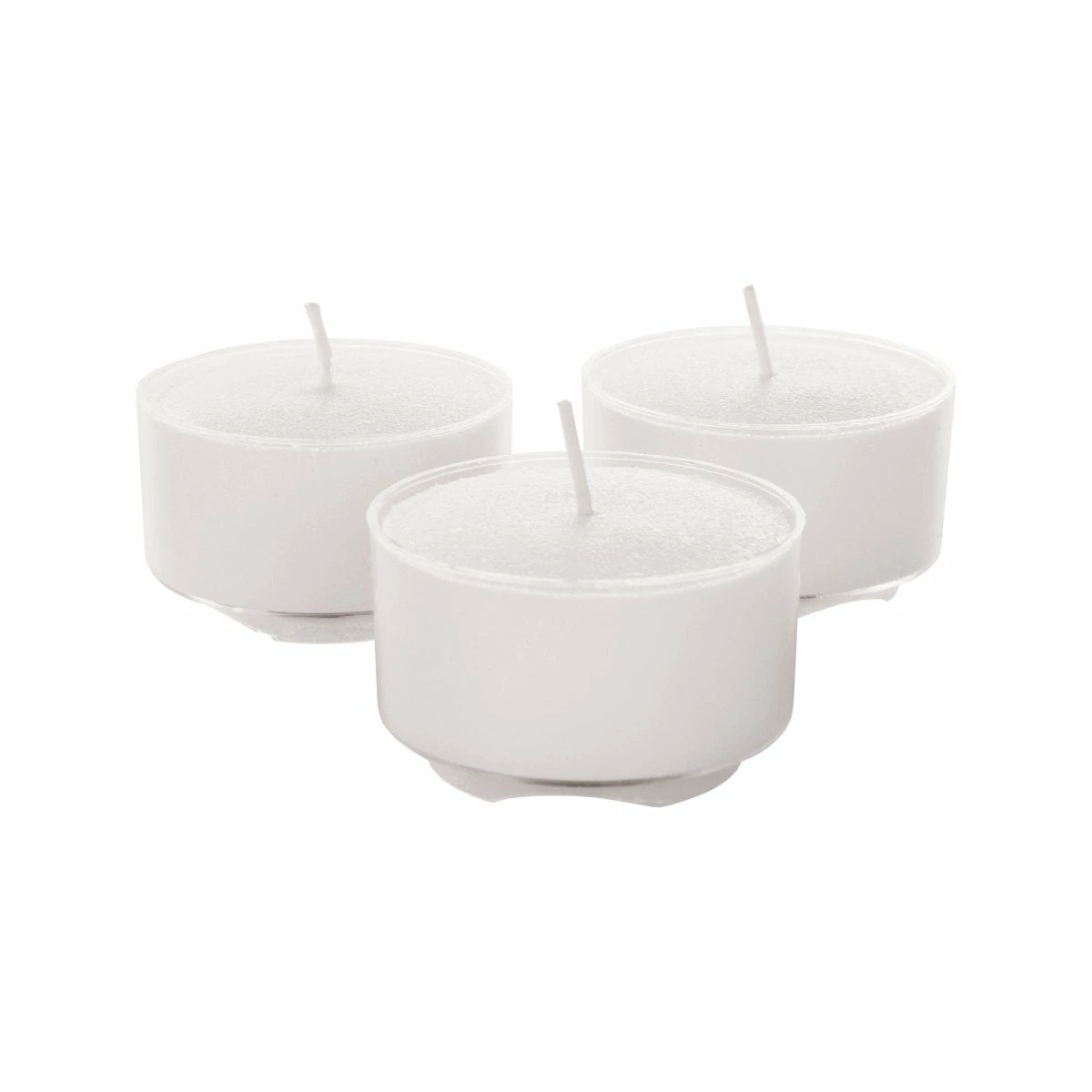 Altar lights in clear polycarbonate cups with special wick to give a larger flame.