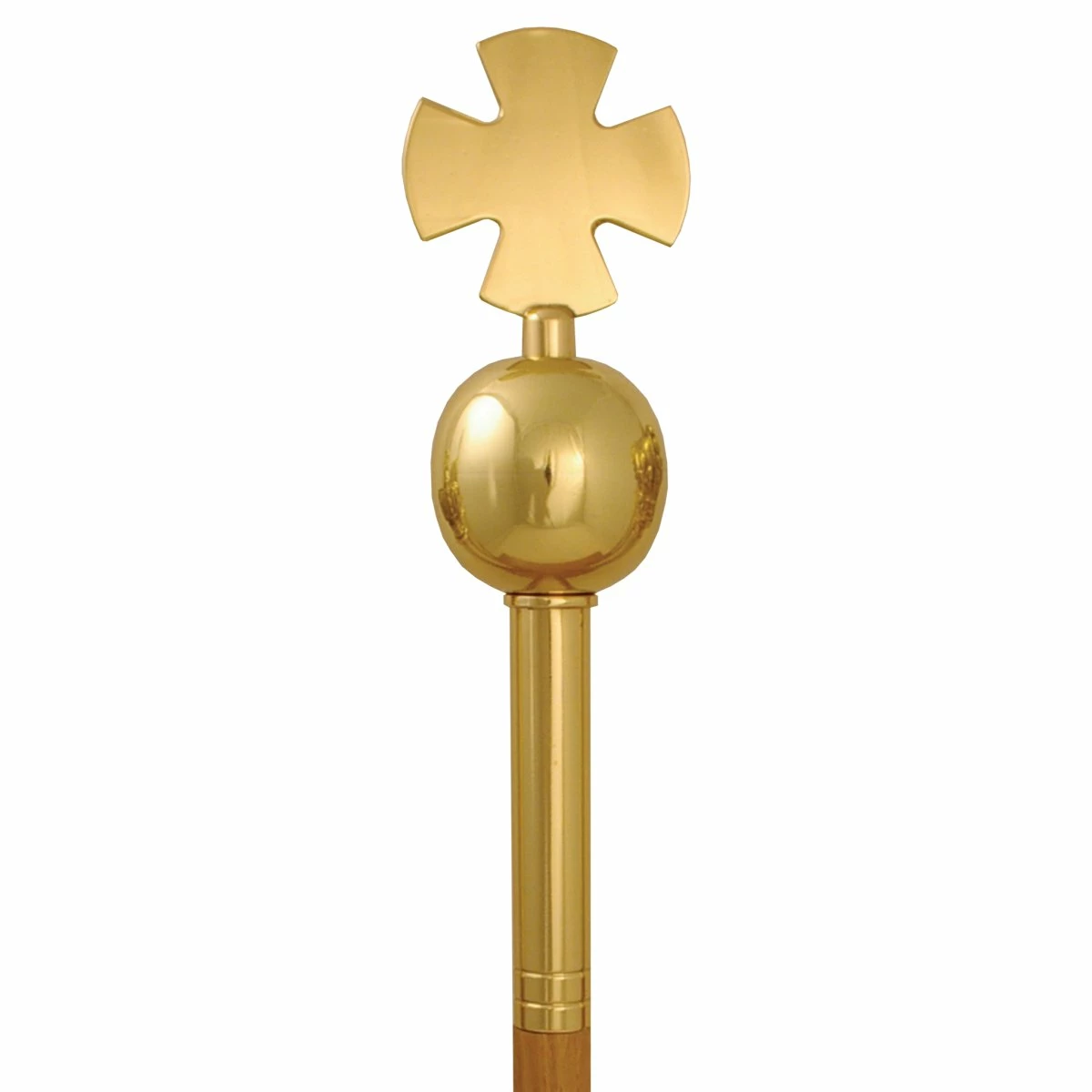 Wand made in polished brass, with cross and orb top.
