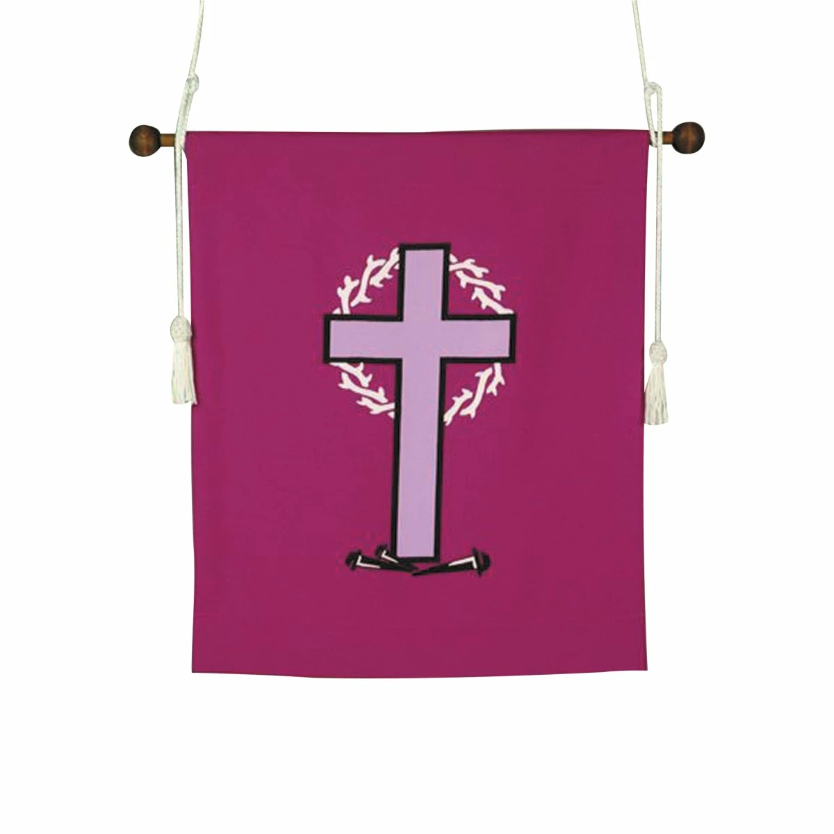 Hanging banner in purple with Crown of Thorns and Easter cross design.