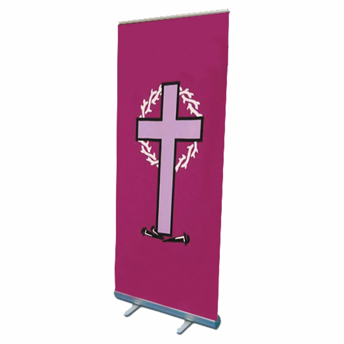 Pop up banner in printed Crown of Thorns and Easter cross design