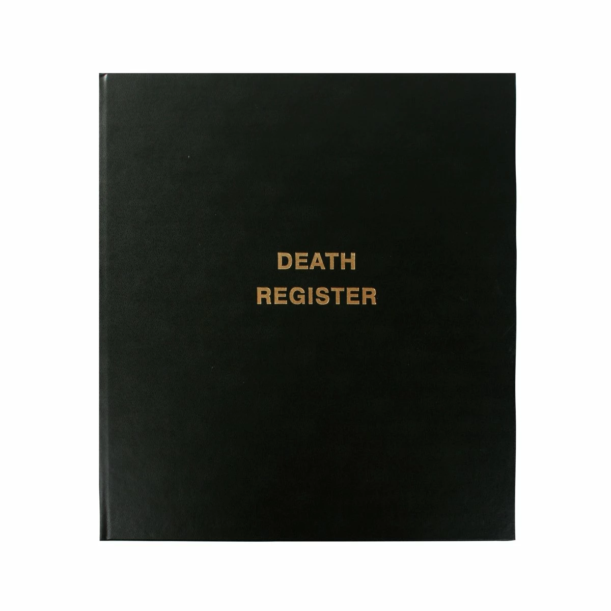 Death register backed in black with gold embossing.