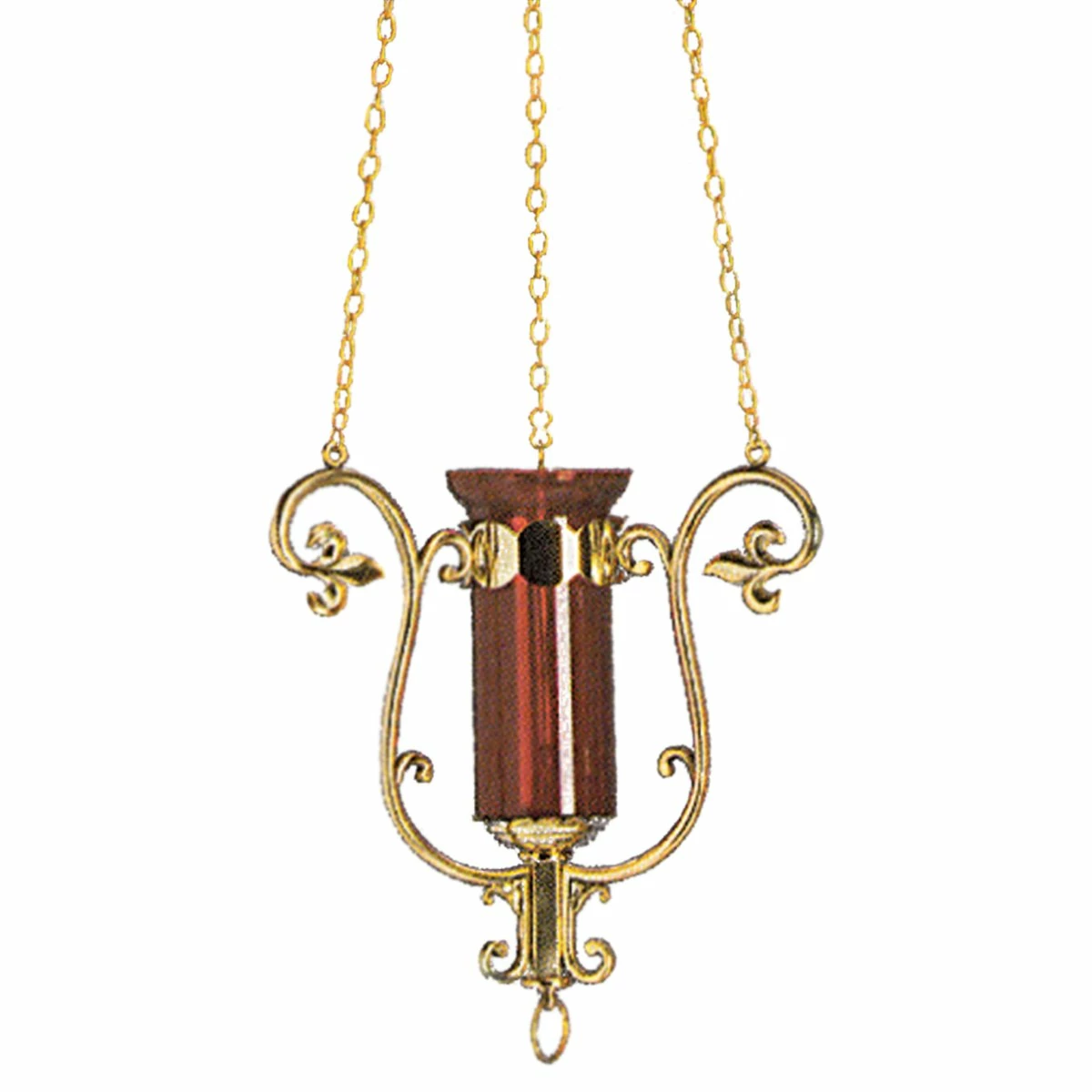 Hanging lamp made in polished brass, featuring fleur-de-lys style arm design.