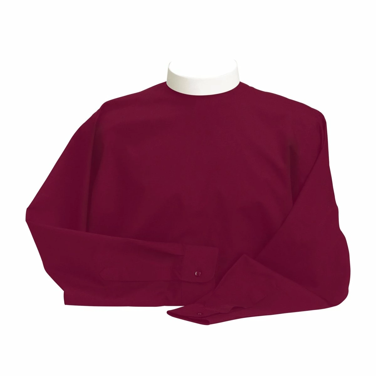 Long Bishop sleeve shirt, made in machine washable polyester cotton in Bishop’s purple.
