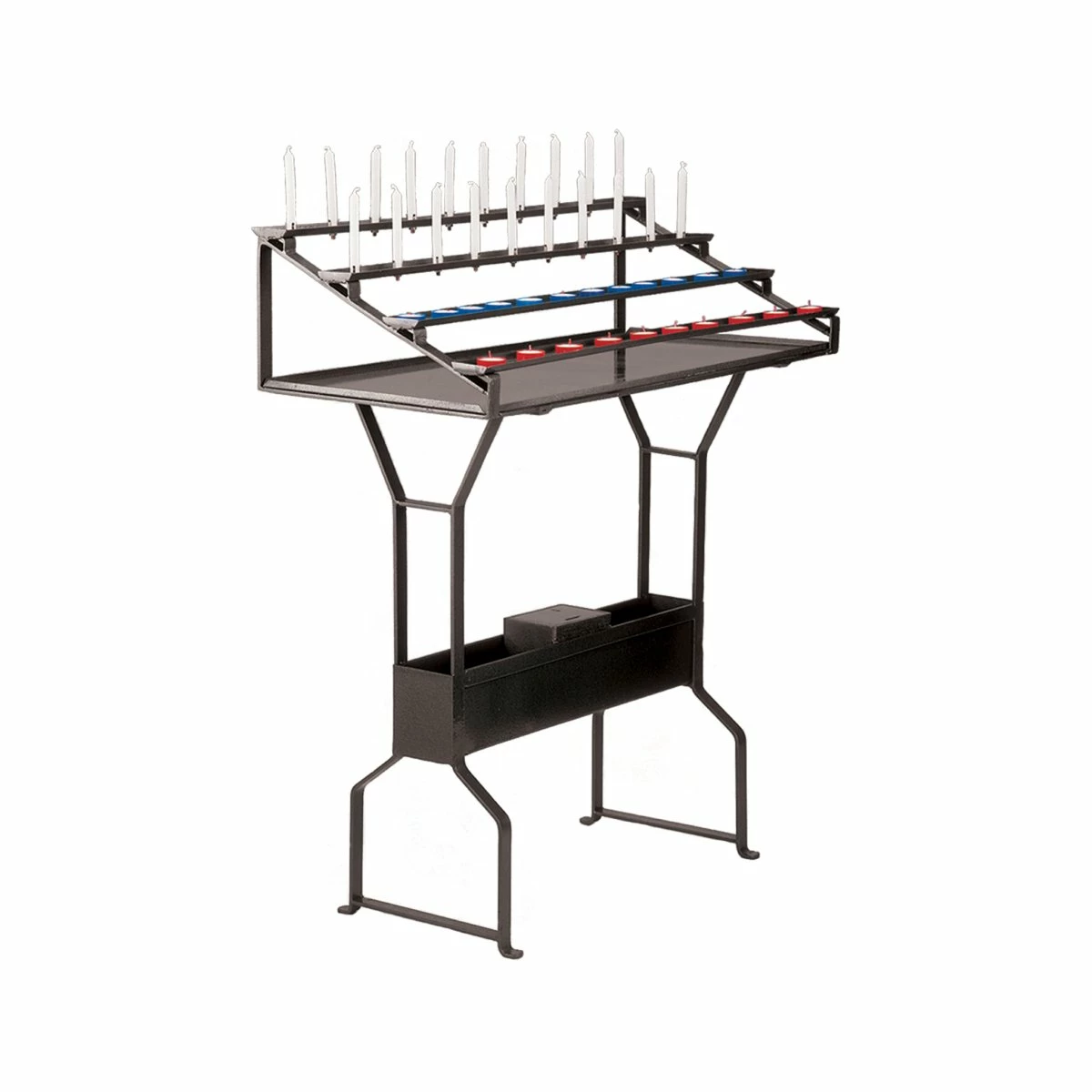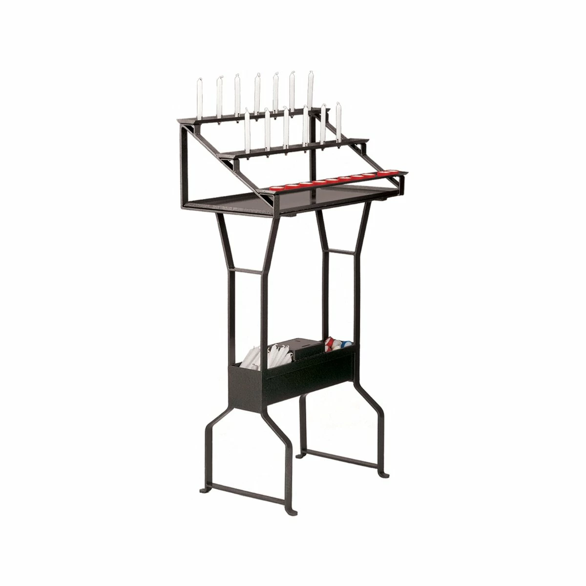 Votive stand made in grey wrought iron, in a modern, angular style design.