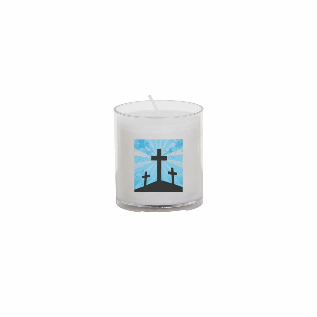 This product is designed to be used year after year. Each pack contains 10 votive lights with Three Cross Easter transfers that can be personalised for free when 10+ packs are purchased. Use these lights in your home to remember the true reason for Easter, or decorate your church in the lead up to Easter.