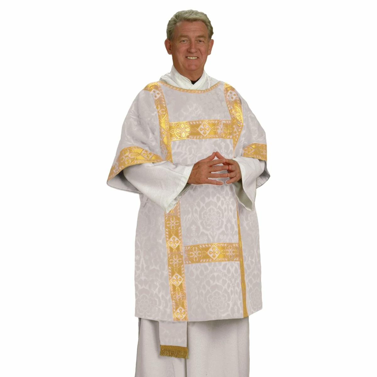 Featuring a traditional style, trimmed with complementing orphrey and complete with matching Deacon’s stole.
